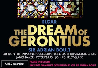 I hardly know what to say, but I will try: This DVD recording of Sir Edward Elgar’s “The Dream of Gerontius” is one of the most magnificent presentations of any piece of music I know. Taped in color by the BBC inside the Worchester Cathedral in 1968, the performance is conducted by Sir Adrian Boult, then 79, and sung by Sir Peter Pears, as Gerontius; John Shirley-Quirk, the Priest; and Dame Janet Baker, the Angel.