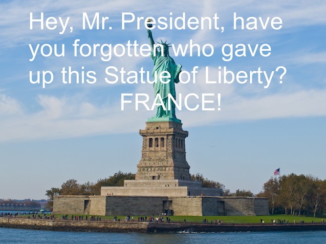 So, President Obama, I want to tell you, “Your choice not to join arms with the nation who gave us the Statue of Liberty in 1886 is repugnant.” Why? If you knew the history of the special relationship between this nation and France, your first impulse would have been, “Of course, I’ll go!” You would have told your staff, “Let’s make this happen, regardless of my schedule.” Sadly, President Obama who had nothing on his schedule for January 11, 2015, didn’t go to Paris and didn’t say why.