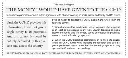 The petition, launched on Wednesday, was made necessary by the dismissive attitude of the USCCB toward the hard evidence linking CCHD grants to organizations supporting abortion and same-sex marriage. USCCB spokeswoman Sr. Mary Ann Walsh admitted she had read only one of the two reports before she rejected their findings.
